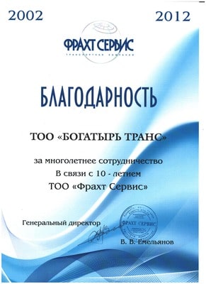 2004 жылдан бастап «Богатырь Транс» ЖШС сенімді түрде Қазақстандағы үш ірі компаниялардың бірі - теміржол операторлары болып табылады.